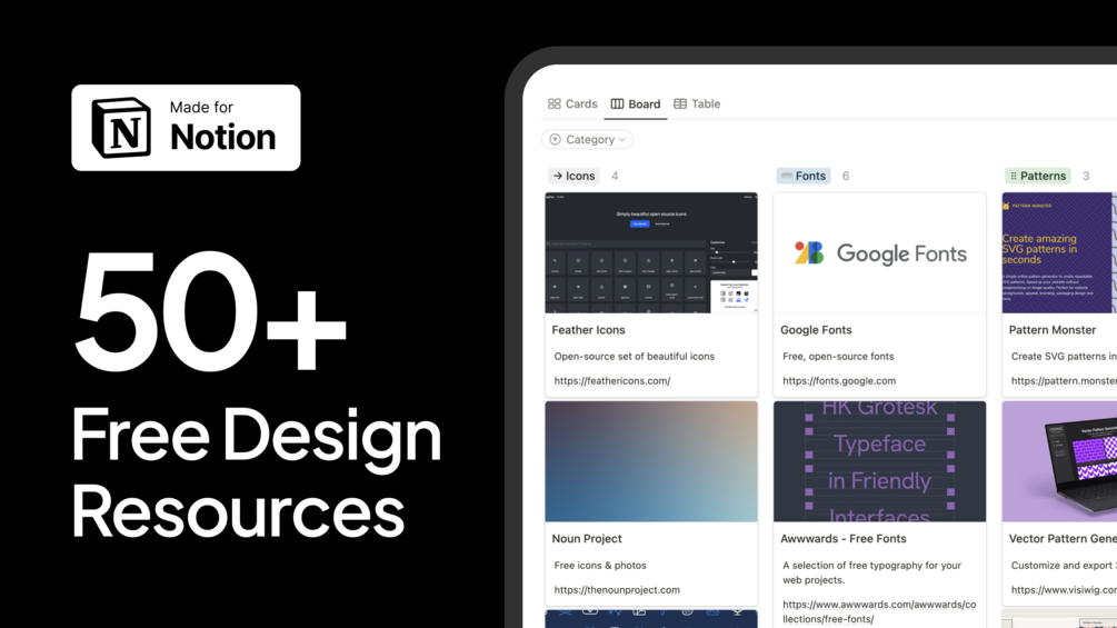 100% Free design resources you'll actually use in the following categories: